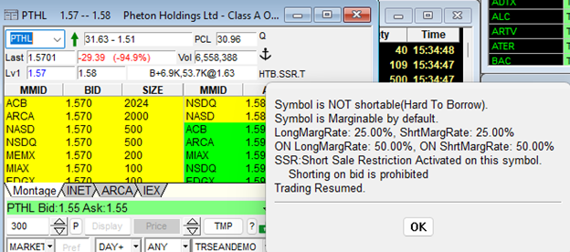For questions regarding a symbol’s shortable status or margin rates, please confer with your broker.